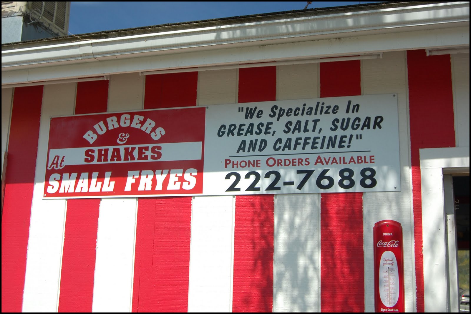 Can't read it? I know. I just wanted you to get the whole "essence" of the crappy weather, with the pine tree blowing, the snow flurries, etc. Now I'll zoom in on the sign.