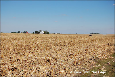Then he turns his big machinery around and heads east, starting a new row. I think I would be tempted to cut designs in the cornfield, wouldn't you?
